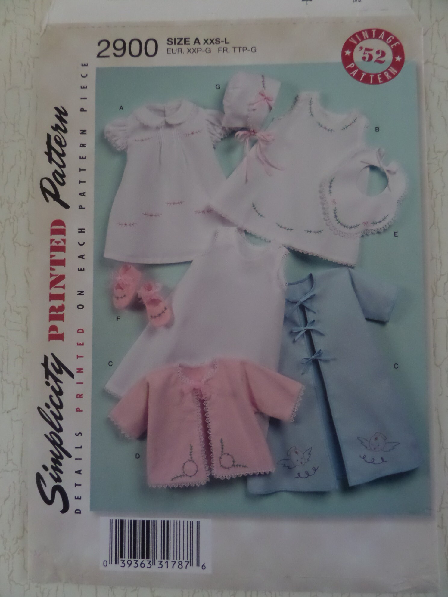 Baby Layette Pattern Simplicity 2900 Infant Xxs L Baby Etsy